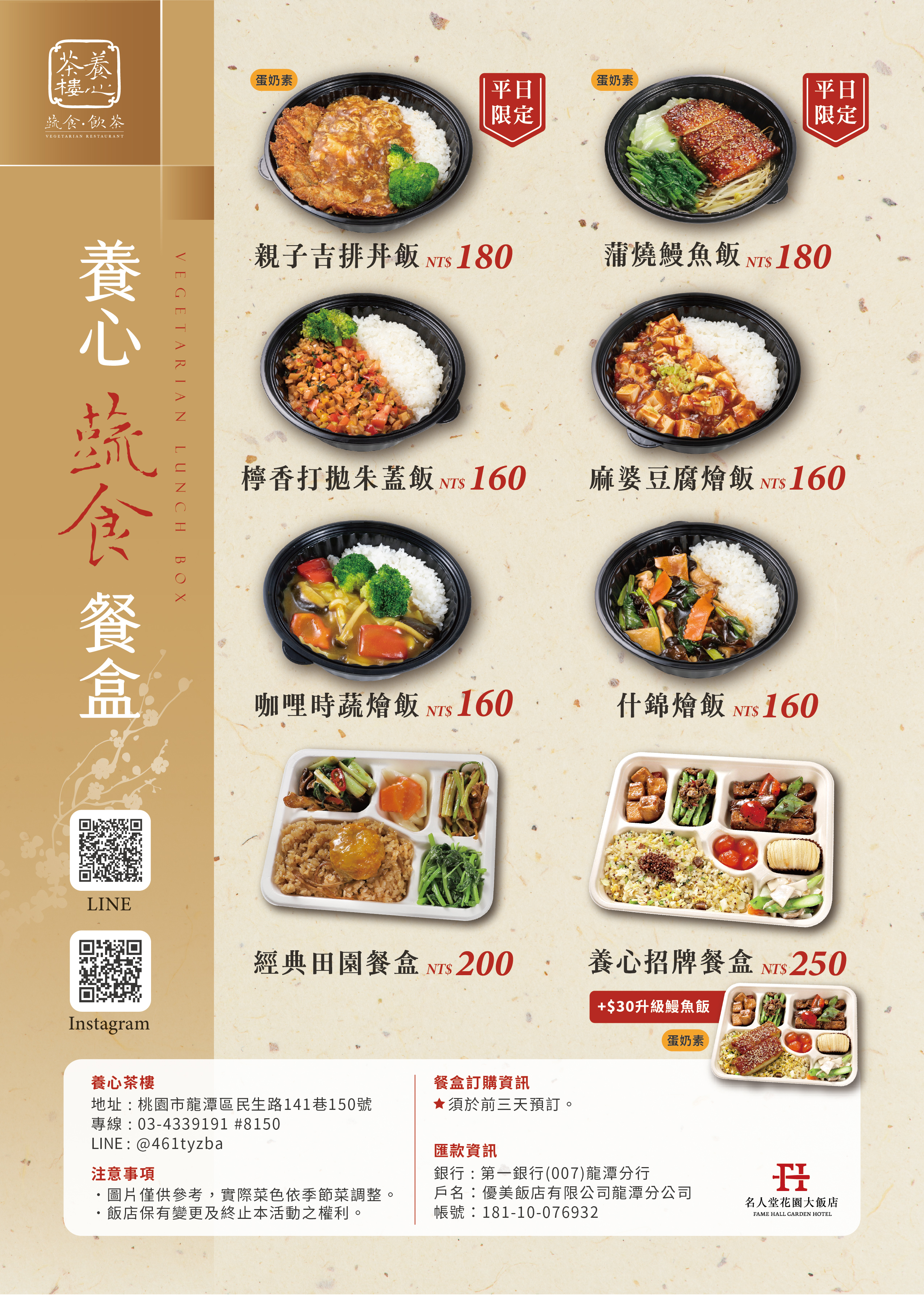 新版官網菜單(外帶餐盒) 至少三小時前預訂!